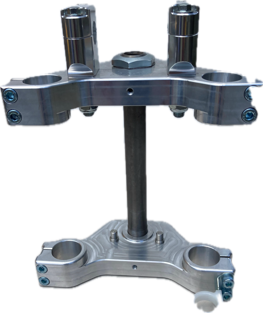 MotoXroads is excited to announce an opportunity to work with NorCal Vintage Racing for their billet components and suspension packages for CZ and Maico. They bring 40 years of suspension expertise as well as a line of billet CZ and Maico components for our customers. NorCal provides billet triple clamps for 35mm CZ and 36mm, 38mm and 42mm Maico forks made from 6061 aircraft quality aluminum precision made on their CNC equipment. The design provides for improved clamping from the fork tube to the triple clamps with a weight savings over the stock triple clamps. The top and bottom clamps are drilled and threaded for number plate mounting and come with your choice of 7/8” or 1-1/8” handlebar mounts as well as replaceable steering stops and a front brake cable guide.